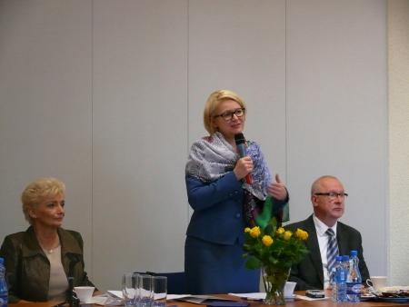 Aktywizacja osób 50+ jest także wyzwaniem dla Unii Europejskiej – stwierdziła Agnieszka Kozłowska-Rajewicz, posłanka do Parlamentu Europejskiego. Pracuje tam w dwóch komisjach: Zatrudnienia i Spraw Socjalnych oraz Praw Kobiet i Równouprawnienia. Z pokazanych przez siebie statystyk wynikało, że Polska zajmuje jedno z ostatnich miejsc wśród krajów europejskich jeśli chodzi o zatrudnienie osób po pięćdziesiątce, a już szczególnie kobiet po pięćdziesiątce. Prym wiodą kraje skandynawskie i z ich rozwiązań należy korzystać. Godne uwagi jest to, że osoby starsze pracują często w krótszym wymiarze czasu w porównaniu z pozostałymi.
