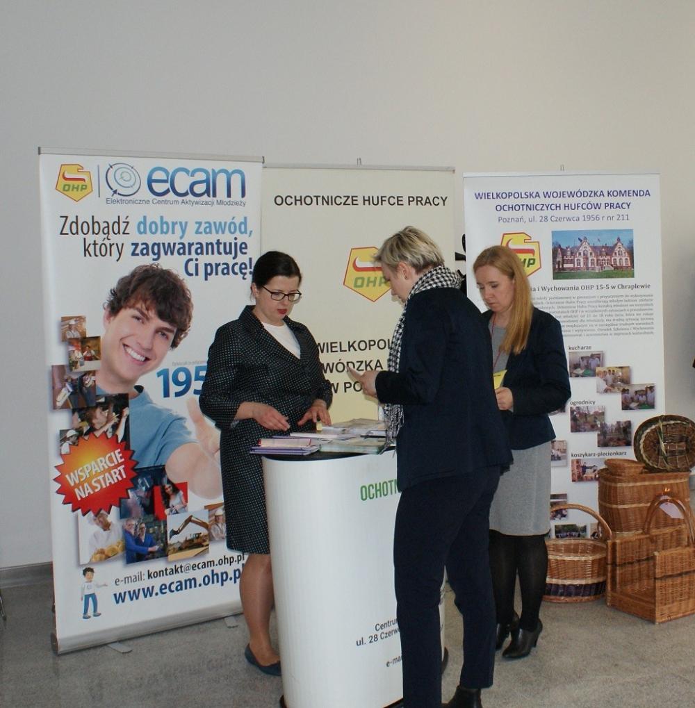 Następnie ofertę i działania na rzecz startu zawodowego młodzieży i zdobywania kwalifikacji zawodowych przedstawiły Pani Maria Kobek, Zastępca Wielkopolskiego Wojewódzkiego Komendanta Ochotniczych Hufców Pracy oraz Pani Anna Dziurdzia, specjalista ds. programów OHP. Uczestnicy konferencji mieli okazję zapoznać się z projektami realizowanymi przez OHP na terenie województwa wielkopolskiego, takich jak „Pomysł na siebie", „Obudź swój potencjał", „Akcja aktywizacja".