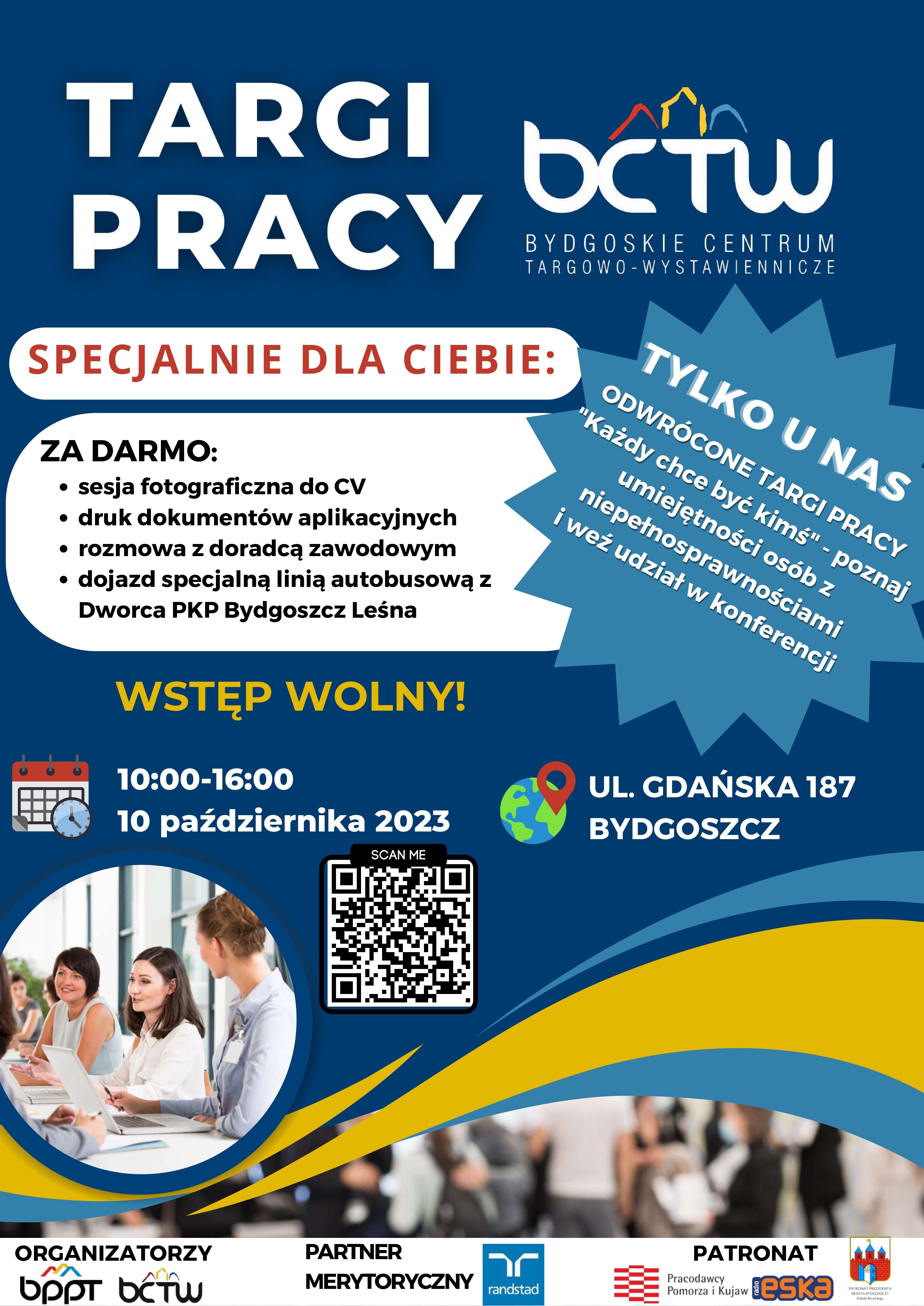 Zapraszamy na VIII Targi Pracy w Bydgoskim Centrum Targowo-Wystawienniczym - ul. Gdańska 187 - 10 października 2023 r. w godz. 10:00 – 16:00